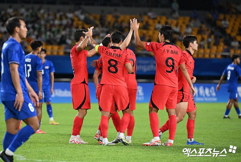 한국은 21일(한국시간) 중국 진화 진화스포츠센터경기장에서 열린 2022 항저우 아시안게임 남자축구 조별리그 E조 2차전 태국과의 경기에서 전반 14분 홍현석의 선제골을 필두고 전반 20분 안재준의 추가골, 전반 39분 엄원상의 쐐기골, 전반 추가시간 이재익의 마무리골을 묶어 4-0 대승을 거뒀다.