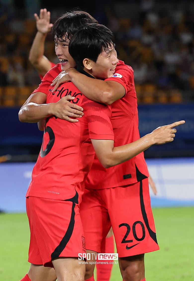황 감독이 새로 꾸린 선발 라인업은 성공적이었다. 전반전에만 네 골을 터뜨렸다. 홍현석, 안재준, 엄원상, 그리고 수비수 이재익까지 골고루 골맛을 봤다. 하프타임 만큼은 전반전에 4골을 넣고 후반전에 5골을 넣은 쿠웨이트전과 같은 흐름이었다.
