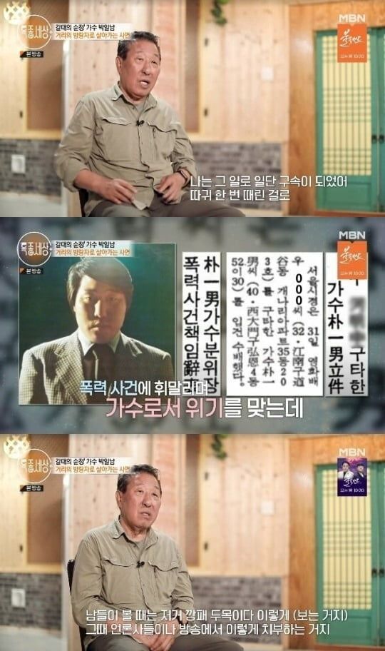 후배를 폭행하고 구속된 가수 박일남이 지날날은 속죄했다.