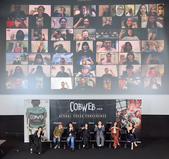 온라인 화상으로 진행된 '거미집' 글로벌 프레스 컨퍼런스는 아시아, 유럽, 오세아니아 등 12개 국가에서 약 60개의 해외 유력 매체들이 참여했다.