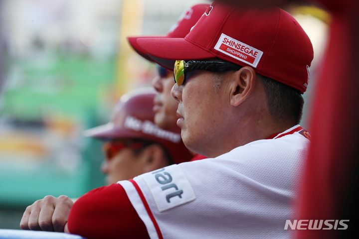 [인천=뉴시스] 조수정 기자 = 27일 오후 인천 SSG랜더스필드에서 열린 KBO리그 LG트윈스 대 SSG랜더스 경기, SSG 김원형 감독이 경기를 지켜보고 있다. 2023.06.27. chocrystal@newsis.com