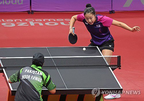 오광헌 감독이 지휘하는 여자 대표팀은 22일 중국 항저우의 궁수 캐널 스포츠파크 체육관에서 열린 대회 탁구 여자 단체전 조별예선 D조 1차전에서 파키스탄에 한 게임도 안 내주고 매치 점수 3-0 완승을 거뒀다.