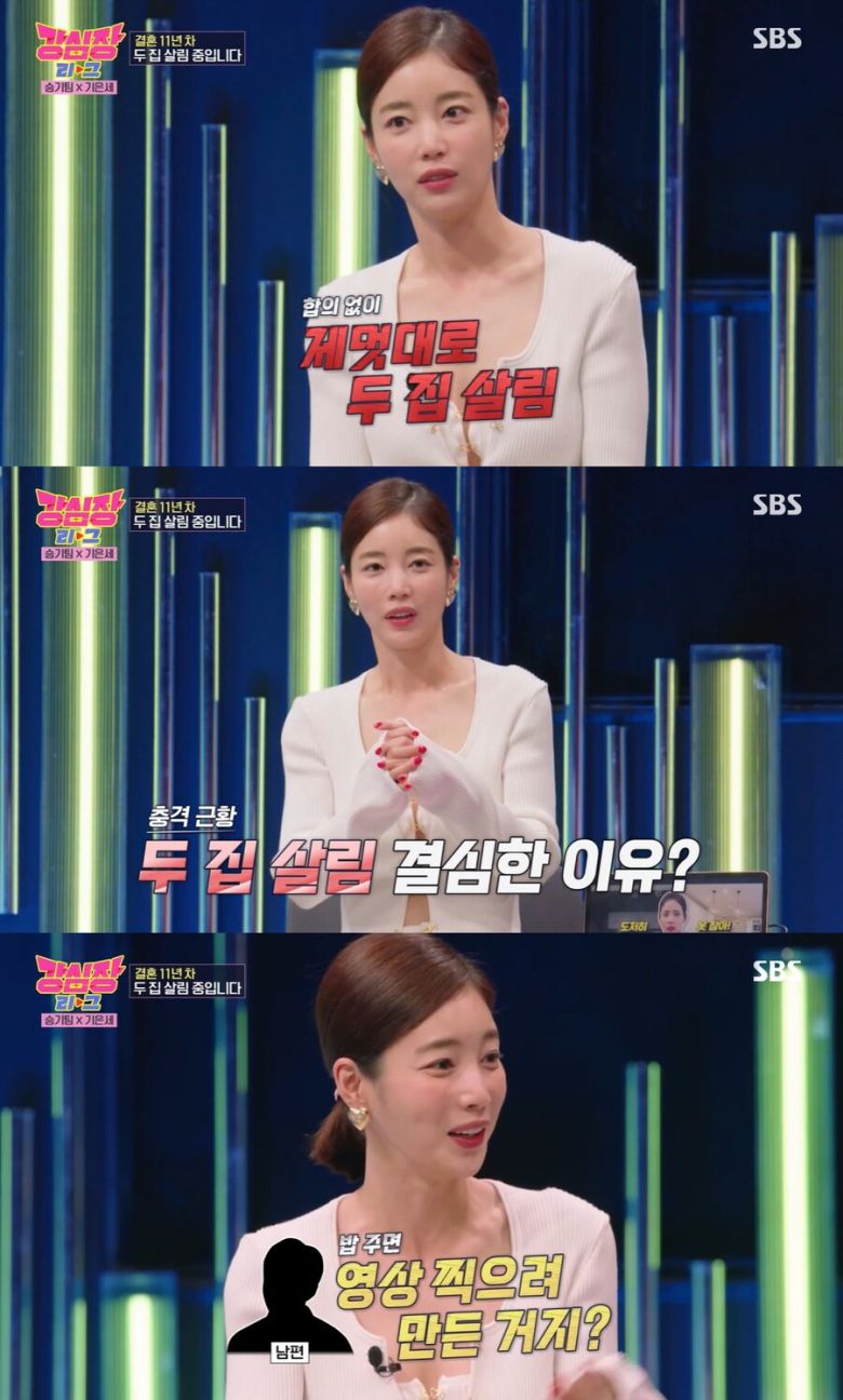 이 가운데 의미심장했던 기은세의 과거 발언이 화제다. 기은세는 지난 7월 11일 SBS '강심장리그'에 출연해 "결혼 11년차에 두 집 살림 중"이라고 밝혀 놀라움을 자아냈다.