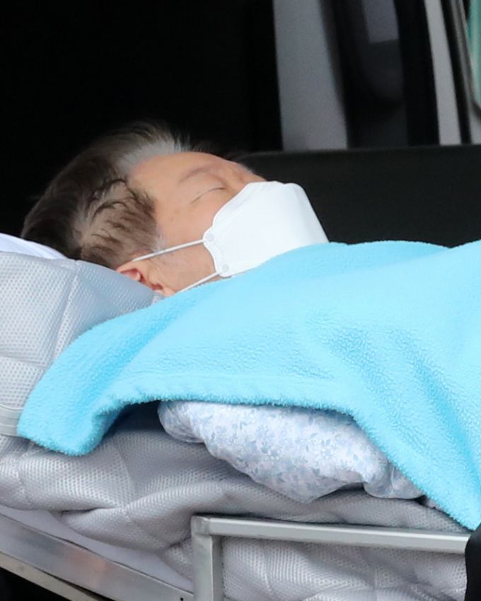 [서울=뉴시스] 김명년 기자 = 단식 19일차인 이재명 대표가 18일 오전 서울 중랑구 녹색병원으로 이송되고 있다. 2023.09.18. |
