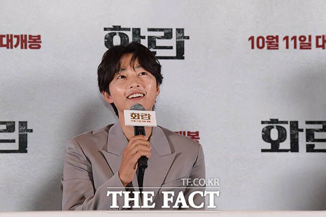 [더팩트ㅣ서예원 인턴기자] 배우 송중기가 22일 오후 서울 강남구 메가박스 코엑스에서 열린 영화 '화란' 언론시사회 및 기자간담회에 참석해 취재진의 질문에 답변하고 있다.