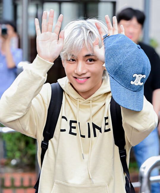뷔는 지난 15일 오전, 서울 여의도 KBS 신관 공개홀에서 진행된 뮤직뱅크 리허설에 참석했다. 화사한 컬러감이 돋보이는 룩으로 내추럴한 스타일링을 선보인 뷔는 출근길에 마주한 취재진과 팬들을 향해 인사를 건넸다.