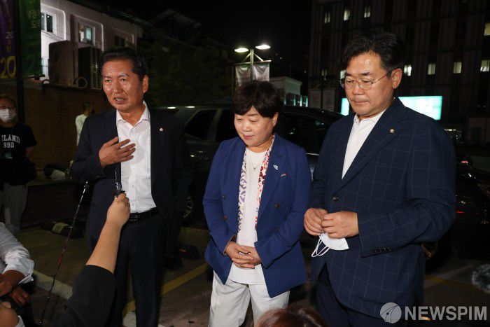 [서울=뉴스핌] 국회사진취재단 = 더불어민주당 정청래, 서영교, 박찬대 최고위원이 22일 저녁 서울 중랑구 녹색병원에서 단식 23일째인 이재명 더불어민주당 대표를 면담한 뒤 브리핑을 하고 있다. 2023.09.22 photo@newspim.com 저작권자(c) 글로벌리더의 지름길 종합뉴스통신사 뉴스핌(Newspim), 무단 전재-재배포 금지 이 기사의 카테고리는 언론사의 분류를 따릅니다.0공유하기