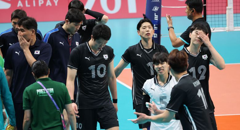 한국 아시안게임 남자 배구 대표팀은 22일 중국 저장성 샤오싱 차이나텍스타일시티 스포츠센터 체육관에서 열린 '2022 항저우 아시안게임' 파키스탄과 12강전에서 세트스코어 0-3(19-25, 22-25, 21-25)으로 졌다. 한국은 프로 선수가 출전한 대회에서 처음으로 파키스탄에 졌는데, 리드를 잡은 상황이 많지 않을 정도로 일방적인 패배였다.