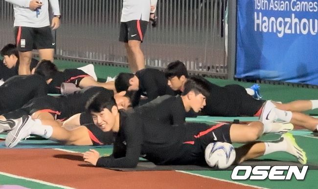 이강인의 표정을 밝았다. 스트레칭 내내 얼굴엔 웃음이 떠나지 않았다. 비록 항저우 샤오산 국제공항 도착 당시 몸 상태를 묻는 말에 "비밀"이라고 답한 이강인이지만, 이날 몸놀림은 가벼워 보였다.