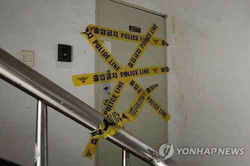 일가족 사망 현장에 설치된 폴리스라인