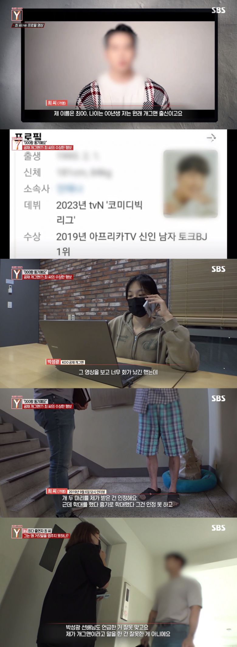 지난 22일 방송된 SBS 시사 프로그램 ‘궁금한 이야기Y’에서는 자신을 개그맨이라고 소개하며 각종 콘텐츠 출연은 물론, 여성들에게도 접근한 남성 최씨(가명)에 대해 집중 조명했다.