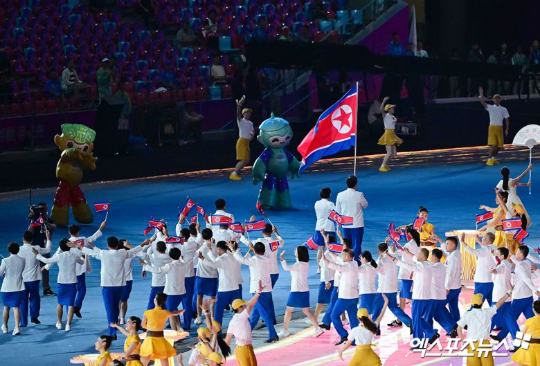 아프가니스탄(AFG)이 가장 먼저 모습을 드러낸 뒤 복싱 방철미와 사격 박명원을 공동 기수로 앞세운 북한(DPRK)이 7번째로 입장했다. 관중석에서는 큰 함성과 함께 갈채가 들렸다.