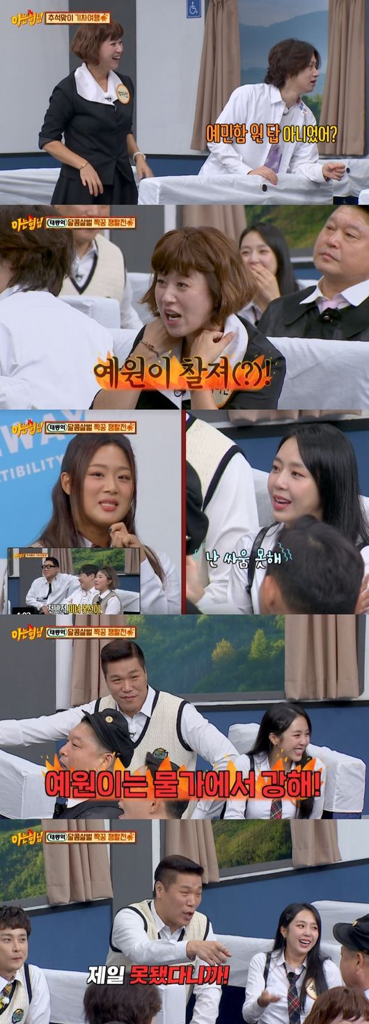 예원은 "난 싸움 못해"라고 손사레 쳤지만, 김희철은 "유인이는 물속에서 강하고 예원이는 물가에서 강해"라고 쐐기를 박았다. 그러자 예원은 웃음을 터트렸고, 서장훈은 "제일 못됐다"며 혀를 내둘러 웃음을 더했다.
