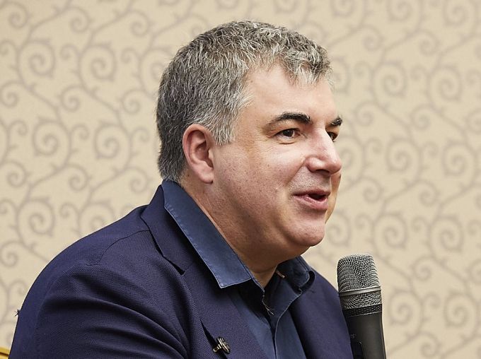 콘스탄틴 노보셀로프(Konstantin Novoselov) 영국 맨체스터대 교수가 24일 서울 강남구 코엑스에서 국내 언론들과 만나 'LK-99 연구에 대한 견해'를 밝히고 있다. / 사진=한국과학기술한림원