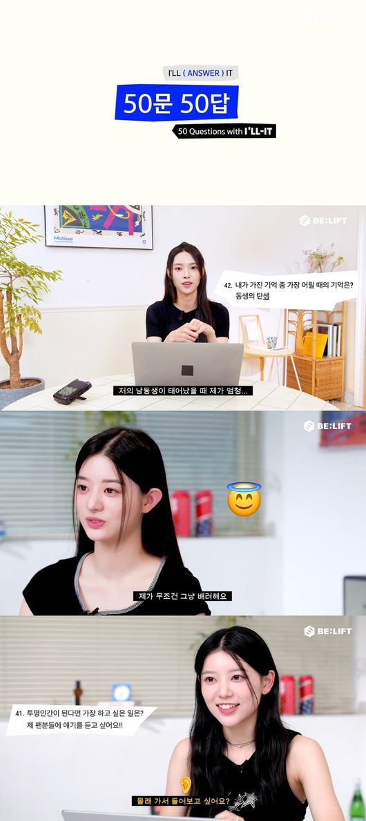 [OSEN=지민경 기자] 하이브 신인 걸그룹 아일릿(I’LL-IT) 멤버들이 각자 개성이 담긴 50문 50답으로 자신을 소개한다.
