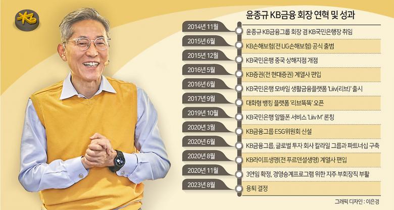 윤 회장은 이후 비은행 계열사를 인수하며 신한과의 리딩금융 경쟁에서 승기를 잡았다. KB손해보험(전 LIG손해보험) 인수를 마무리하고, 2016년 KB증권(당시 현대증권)을 인수했을 때만 해도 사내에는 계열사 확장을 두고 위기감이 팽배했다. 하지만 이듬해 바로 KB증권이 3000억원에 가까운 순이익을 내는 등 인수합병(M&A) 효과가 본격화하며 KB는 사상 처음 ‘3조 클럽’ 반열에 올랐다. 2020년에는 KB라이프생명(푸르덴셜생명)을 품으며 생명보험 분야도 확충했고, 신한금융과 1위 자리를 두고 엎치락뒤치락한 결과 리딩금융 왕좌를 탈환했다. KB금융은 최근 2년 연속 4조원의 순이익을 냈다.