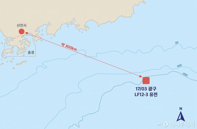 SK어스온은 남중국해 북동부 해상에 있는 17/03 광구 내 LF(루펑)12-3 유전에서 9월부터 원유 생산을 시작한다고 25일 밝혔다. 17/03 광구는 중국 선전시에서 약 300㎞ 떨어져 있으며 크기는 여의도 면적(2.9㎢)의 15배에 달한다. 일일 생산량은 석유 생산 정점을 기준으로 약 2만9500배럴로 국내 하루 석유 소비량의 1%를 넘는 규모다.