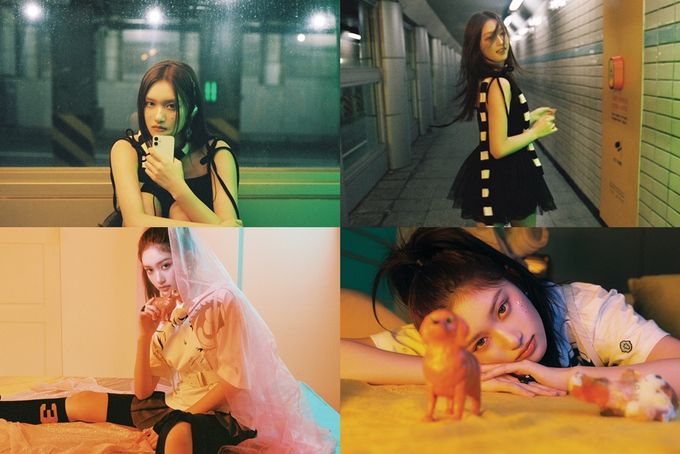 먼저 안유진은 파격적인 헤어 컷과 강렬한 아이 메이크업으로 오묘하면서도 시크한 무드로 시선을 잡아끌었다. 가을은 반짝이는 글리터와 물방울 큐빅이 마치 눈물처럼 연출되면서도 차갑고 도도한 매력을 발산했다. 레이는 양갈래 머리와 잘 어울리는 키치한 스타일링부터 무표정한 얼굴의 신비한 매력까지 천의 얼굴을 선사했다.