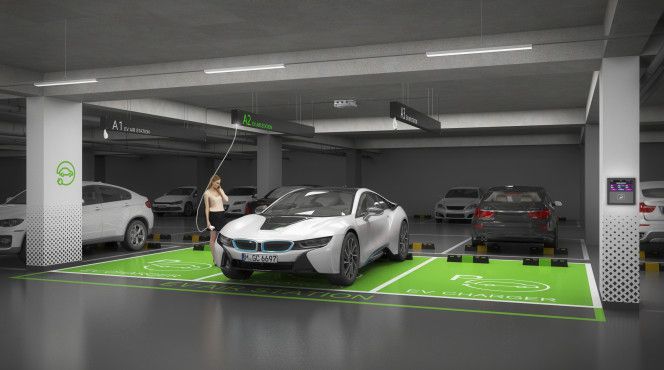 포레나 EV 에어 스테이션은 천장에서 커넥터가 내려오는 차세대 전기차 충전시스템으로 하나의 충전기로 3대까지 동시에 충전할 수 있다. 기존 주차공간을 줄이지 않고 설치할 수 있어, 전기차 충전시스템의 문제점으로 지적돼왔던 주차 공간 부족 문제의 대안이 될 수 있고 기존 준공 단지에도 위치의 제한 없이 설치가 가능한 확장성을 가지고 있다.