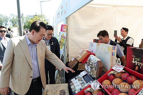 이튿날에도 부인 김건희 여사와 함께 용산 대통령실 앞 공원에서 열린 장터를 찾아 추석 성수품을 골고루 구매하며 상인들을 격려했다.