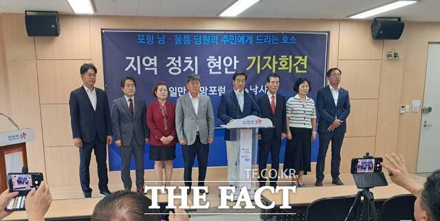 안기수 국민의힘 포항남·울릉 중앙위원회 회장은 "김병욱 의원으로는 어떤 희망과 비전도 없다는 참담함으로 국민의힘 공천배제를 위해 힘을 모아주실 것을 호소드리고자 한다"고 말문을 열었다.