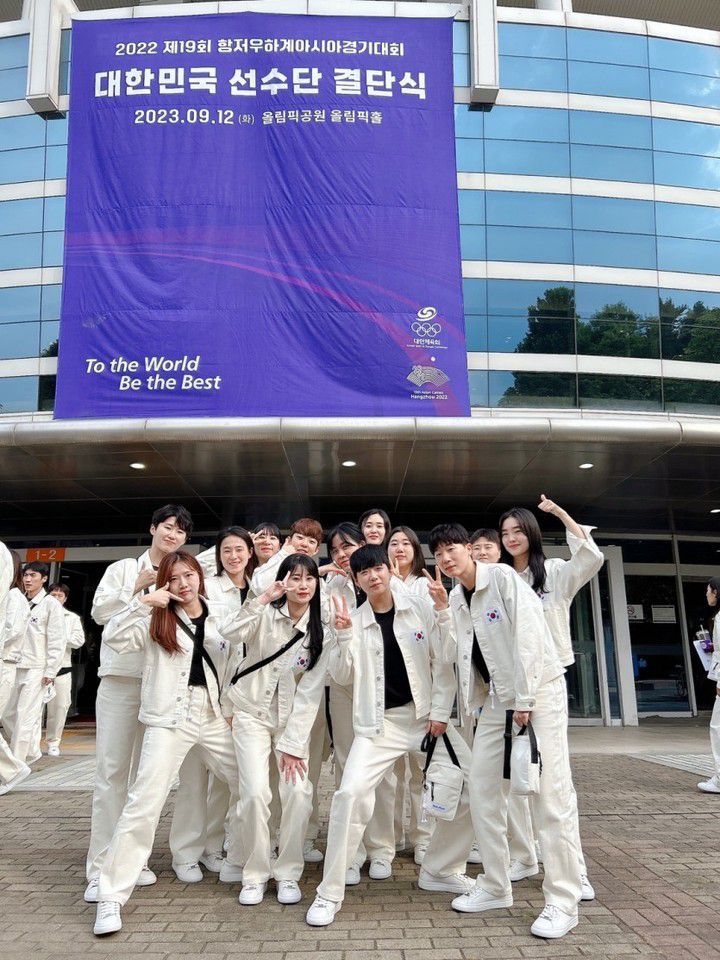 사진=대한세팍타크로협회, 항저우 아시안게임 출정식에서의 세팍타크로 대표팀