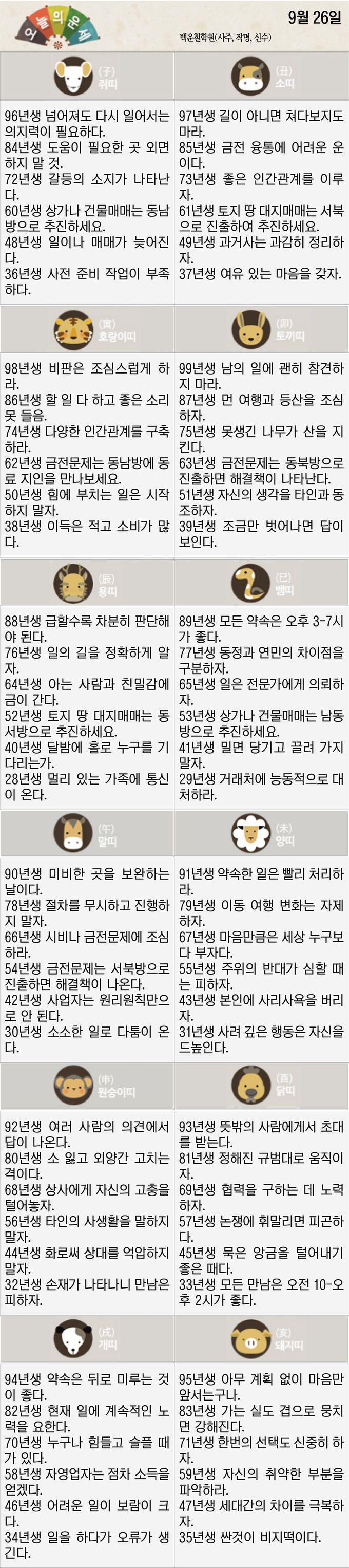 [재미로 보는 오늘의 운세] 9월 26일 (화요일)