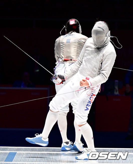 [OSEN=항저우(중국), 최규한 기자] 25일 오후 중국 항저우 전자대학 체육관에서 열린 ‘제19회 항저우 아시안게임’ 남자 사브르 개인 4강전이 열렸다.