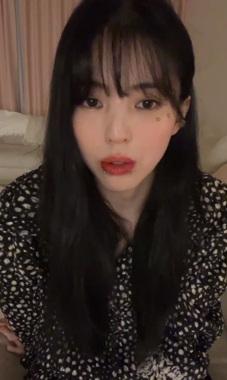 최근 입술에 피어싱을 한 사실을 공개해 화제가 된 한소희. 그는 라이브 방송을 통해 눈 밑에도 두 개의 피어싱을 추가로한 모습을 선보였다.