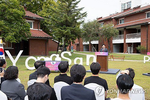 (서울=연합뉴스) 원희룡 국토교통부 장관이 25일 오후 서울시 용산구 용산공원 부분개방부지내 잔디광장에서 열린 국토부-보훈부 보훈문화 확산 업무협약식에 참석하여 인사말을 하고 있다. 2023.9.25 [국토교통부 제공. 재판매 및 DB 금지]