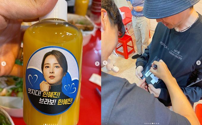 한혜진은 해시태그로 “사랑의 도시락”, “남편의 서프라이즈 선물”, “고마워”라는 글과 함께 “맛있게 잘 먹었어. 정말 힘이 난다!! 남자들에게 인기많은 남편. 근데 보통 도시락에 내 사진 붙이지 않나?”라며 남편에 대한 애정을 드러냈다.