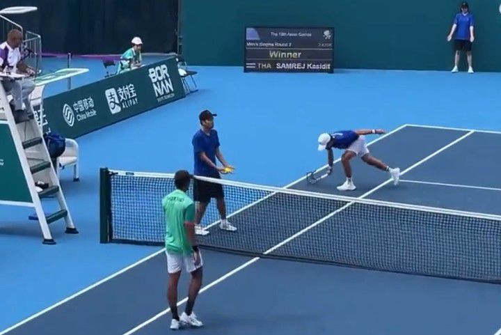 2022 항저우 아시안게임 남자 테니스 단식 2회전에서 패한 권순우가 라켓을 부수고있다, X (구 트위터) |