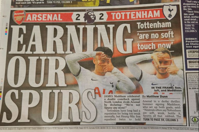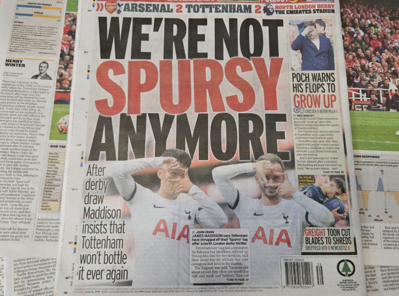 또 다른 매체도 손흥민과 매디슨의 '찰칵 세리머니'와 함께 "우리의 스퍼스를 얻었다"라며 토트넘의 부활을 언급했고, 한 매체는 "아스널은 아직 탑건(Top Gun, 최고의 총잡이)이 아니다"라며 지난 시즌 프리미어리그 우승을 아쉽게 놓쳤던 아스널이 챔피언이 되기 위해선 아직 멀었다고 주장했다.