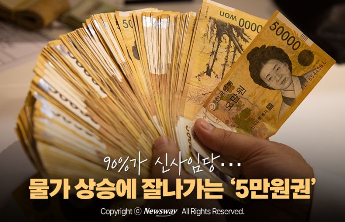 우리나라 경제 규모가 커지면서 지난 2009년 한국은행이 5만원권 발행을 시작했는데요. 발행 약 14년 만에 화폐발행잔액에서 차지하는 비율이 90%에 육박하는 것으로 나타났습니다.