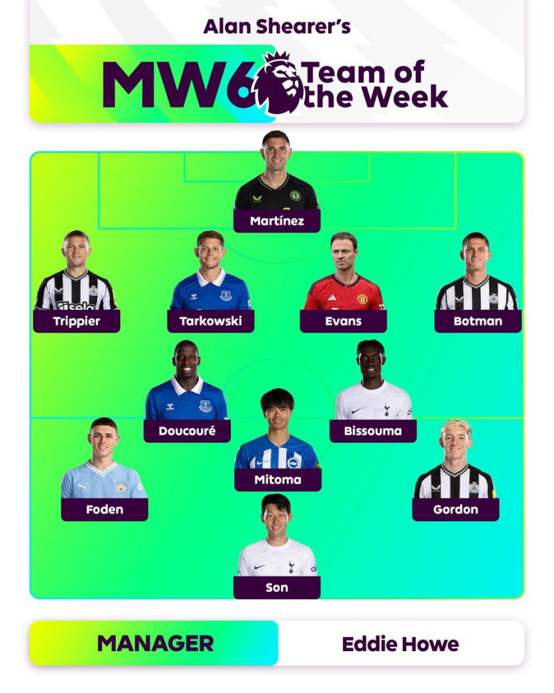 프리미어리그 사무국은 26일(한국시간) 공식 홈페이지를 통해 2023-24시즌 프리미어리그 6라운드 이주의 팀을 알렸다. 프리미어리그 이주의 팀은 전설적인 공격수 앨런 시어러가 선정하는데, 원 톱 자리에 손흥민이 당당하게 선정됐다. 시어러는 "(북런던더비) 첫번째 골 움직임은 엄청났고, 두 번째 골에서는 상당히 침착했다"라며 엄지를 세웠다.
