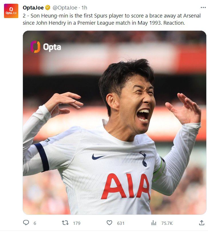 현지 매체는 아스널과 북런던더비가 열리기 전에 선발 선수 중 당연히 이름을 올려야 할 선수로 꼽혔다. 영국 '풋볼런던'은 "포스테코글루 감독에게 없어서는 안 될 선수들이 있다. 토트넘의 주장인 손흥민은 번리전에서 해트트릭을 기록하며 토트넘 공격에 활력을 불어 넣었다. 손흥민은 왼쪽 윙에서 출전하든, 중앙 공격수로 출전하든 영향력을 발휘한다. 주장 완장을 차고 있는 그는 토트넘에서 자동으로 선발 출전해야 한다"라며 무조건 어떤 경기에서든 무조건 선발로 나서야 하는 선수라고 평가했다.