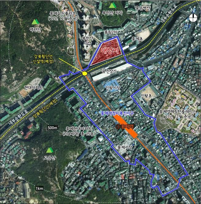 전체 1만1571.0㎡ 넓이 홍은1구역은 뉴타운사업 추진에 따라 2008년 정비구역으로 지정됐다. 하지만 장기간 사업 정체로 2016년 재정비촉진구역이 해제된 바 있다.