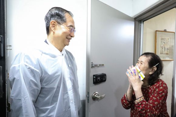 한덕수 국무총리는 26일 새벽 서울 성동구 금호동을 찾아 홀로 사는 어르신 가구에 우유를 배달하며 안부를 나눴다. 이기일 보건복지부 1차관과 사단법인 ‘어르신의 안부를 묻는 우유배달’의 호용한 이사장이 한 총리와 동행했다.