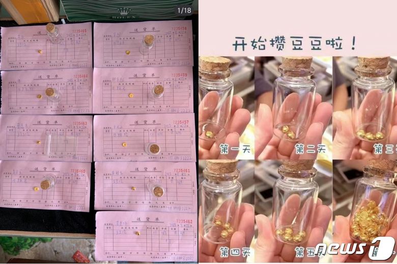 최근 중국 내 금 가격이 지속 상승하고 있는 가운데 '황금콩'을 모으기 시작하는 청년들이 증가하고 있다.. 사진은 중국 SNS에 올라온 황금콩 구매 인증 모습.