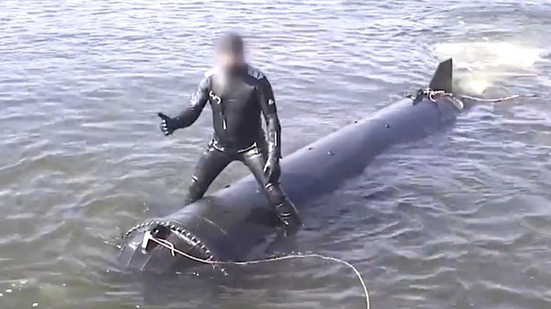바닷속에서 은밀하게 접근해 적을 타격하는 이른바 '가미카제(자폭) 잠수함 드론'의 영상이 공개됐다. 지난 25일(현지시간) 미 군사전문 매체 '더워존'은 우크라이나의 새로운 잠수함 드론인 ‘마리치카’(Marichka)를 소개했다. 이날 소셜미디어 X 등을 통해 공개된 영상에는 마리치카가 배 위에서 바다로 내려지는 모습이 담겨있는데 작업자들의 얼굴은 모두 흐리게 가려져 있다.