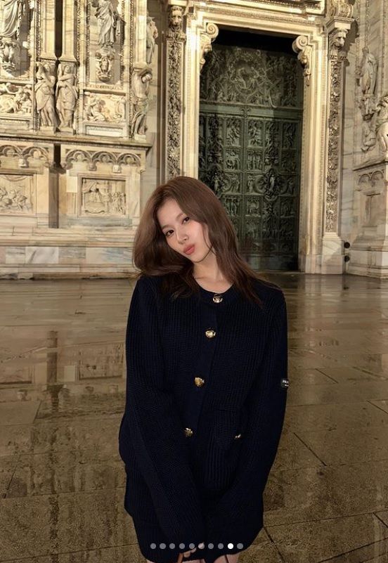 공개된 사진은 사나의 일상. 비 내리는 이탈리아 밀라노 대성당을 거니는 사나는 영화 속 한 장면처럼 낭만적인 순간을 즐기는 그의 모습이 시선을 모은다.