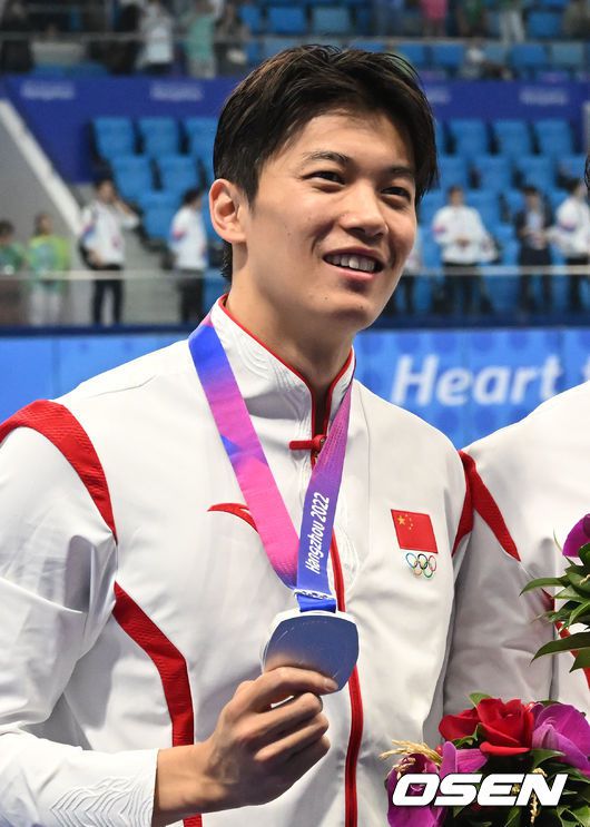 경기 종료 후 은메달을 차지한 중국 대표팀 왕순이 취재진을 향해 포즈를 취하고 있다. 2023.09.25 / ksl0919@osen.co.kr