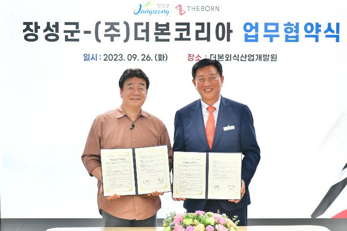 장성군이 26일 ㈜더본코리아와 업무협약을 체결했다. 장성군 제공 |