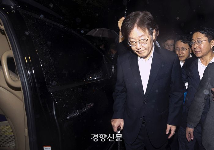 유 부장판사는 전날 오전 10시5분부터 오후 7시23분까지 약 9시간 20분 동안 이 대표의 구속 필요성을 따지는 심문을 진행했다. 이 대표는 심문을 받기 전 ‘영장실질심사를 받게 됐는데 한 말씀 해달라’는 취재진 질문에 아무런 대답을 하지 않고 지팡이를 짚으며 법정으로 들어갔다. 심문을 마치고 나올 때도 취재진 질문에 답을 하지 않았다. 국정 쇄신과 내각 총사퇴를 요구하며 지난달 31일 단식에 돌입한 이 대표는 지난 23일 단식을 중단하고 법정에 나왔다.