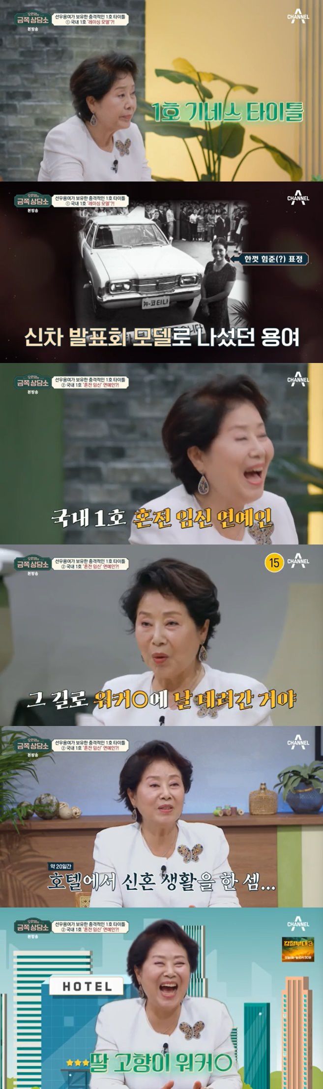 특히 "대한민국 1호 혼전임신 연예인이라던데 이게 어떻게 확인이 된 거냐"라는 질문이 이어졌다. 선우용여는 이 얘기를 듣자마자 폭소하며 솔직하게 사건의 전말을 공개했다.