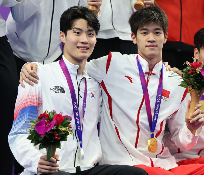 이들은 26일 열린 혼계영 400m에서도 마지막 자유형 영자로 맞대결했다. 결과는 각 종목에서 세계적인 선수들을 보유한 중국의 우승이었다. 한국은 비록 시상대 가장 높은 곳에 서지 못하며 은메달을 따냈지만 황선우는 자기 소임을 다하며 일본을 추월하고 메달 색깔을 '은빛'으로 바꿨다.