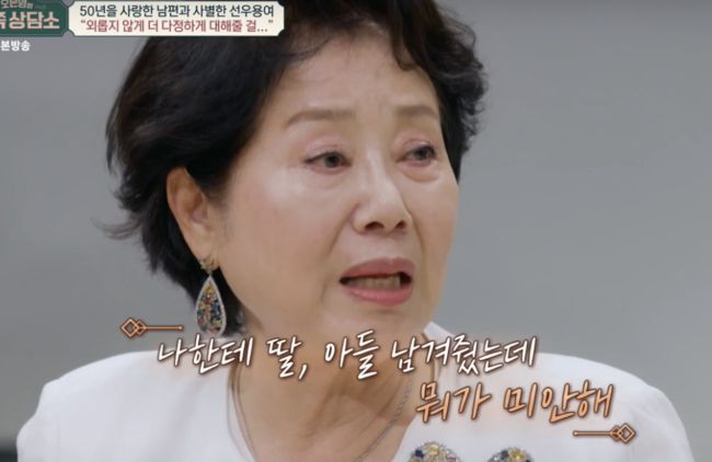이후 적극적으로 일해야겠다 생각했다는 선우용여는 “이제 배우는 직업이라 생각해 생활 전선에 뛰어들었다남편이 나랑 결혼해서 저렇게 됐구나 느껴 통장도 다 남편을 줬다”며 “당장 집 없이 생활전선에 뛰어들어야했다”며 35세였던 시절, 가장의 짐이 무거웠다고 했다.