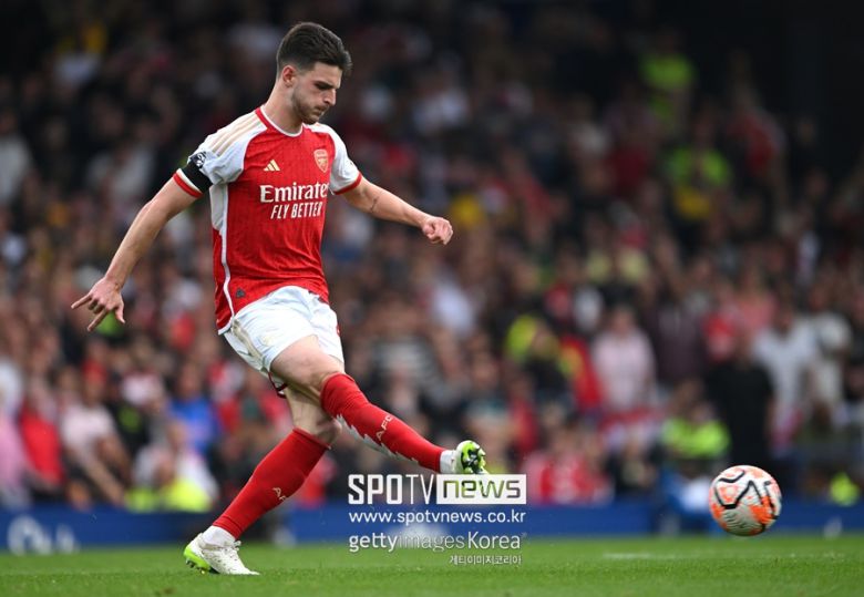 라이스는 24일 영국 런던 에미레이츠 스타디움에서 열린 2023-2024시즌 잉글랜드 프리미어리그 6라운드 토트넘과 북런던 더비서 아스널의 수비형 미드필더로 선발 출전했다.