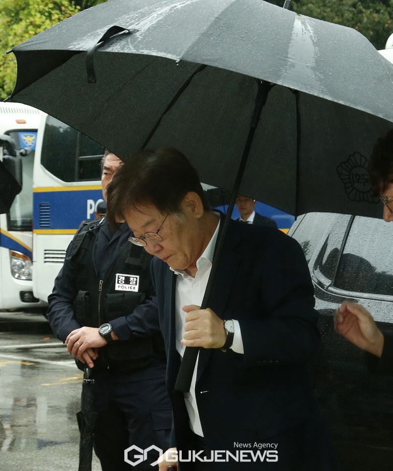 ▲26일 오전 서울중앙지방법원에 출석하는 이재명 더불어민주당 대표. |