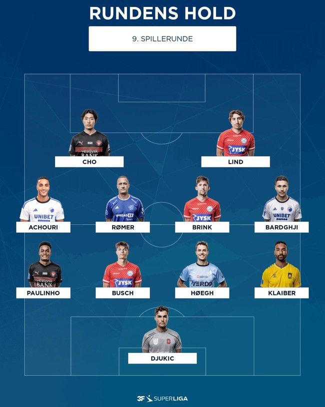 덴마크 수페르리가 사무국은 26일(한국시간) 공식 SNS를 통해 수페르리가 9월 이달의 베스트 일레븐을 선정해 발표했다. 포메이션은 4-4-2다. 조규성은 투톱 중 한 자리를 차지하며 지난 7월에 이어 두 번째 이달의 팀에 등극했다. 이와 동시에 덴마크 수페르리가 9라운드 이주의 팀에도 선정됐다.